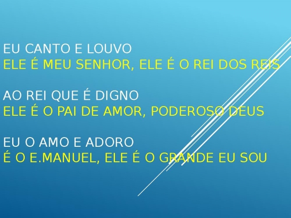 - Eu canto e louvo Ele é meu Senhor, Ele é o Rei dos reis Ao Rei que é dignoEle é o Pai de amor, Poderoso Deus Eu o amo e adoro É o E.manuel, Ele É o Grande Eu Sou