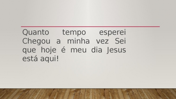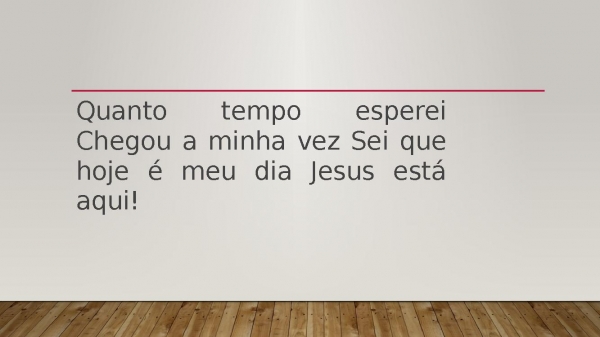 - Quanto tempo esperei Chegou a minha vez Sei que hoje é meu dia Jesus está aqui!