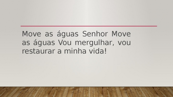 - Move as águas Senhor Move as águas Vou mergulhar, vou restaurar a minha vida!