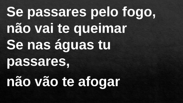 - Se passares pelo fogo, não vai te queimarSe nas águas tu passares, não vão te afogar