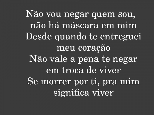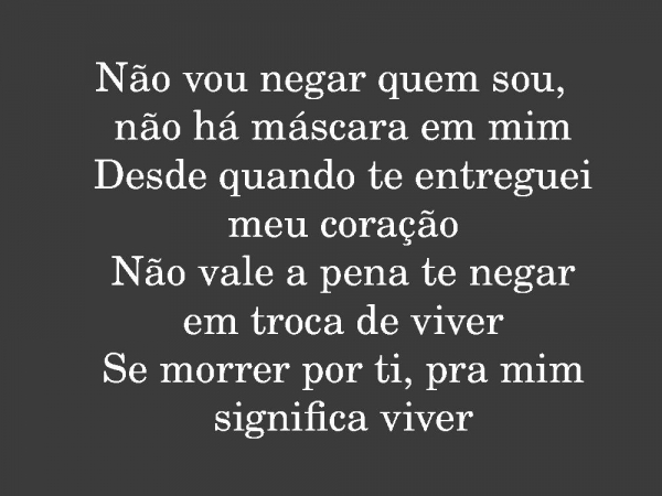- Não vou negar quem sou, não há máscara em mimDesde quando te entreguei meu coraçãoNão vale a pena te negar em troca de viverSe morrer por ti, pra mim significa viver