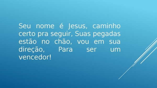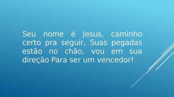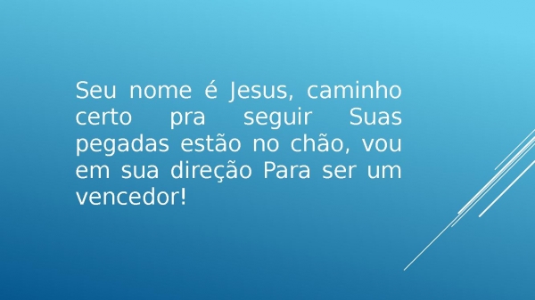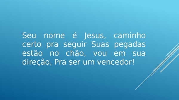 - Seu nome é Jesus, caminho certo pra seguir, Suas pegadas estão no chão, vou em sua direção, Para ser um vencedor!