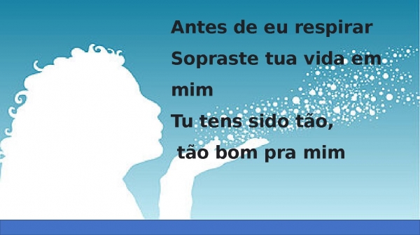 - Antes de eu respirarSopraste tua vida em mimTu tens sido tão, tão bom pra mim