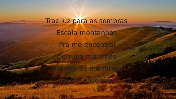 - Traz luz para as sombrasEscala montanhas Pra me encontrarDerruba muralhasDestrói as mentirasPra me encontrar
