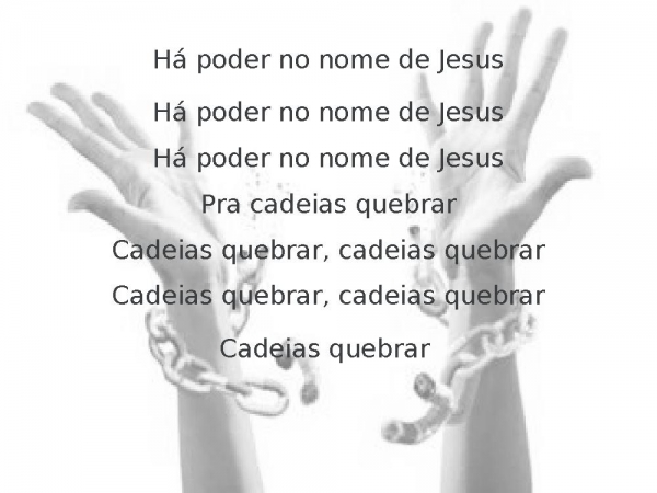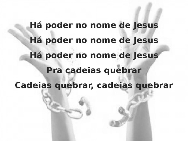 - Há poder no nome de JesusHá poder no nome de JesusHá poder no nome de JesusPra cadeias quebrarCadeias quebrar, cadeias quebrarCadeias quebrar, cadeias quebrarCadeias quebrar