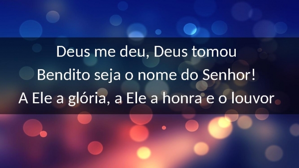 - Deus me deu, Deus tomouBendito seja o nome do Senhor!A Ele a glória, a Ele a honra e o louvor
