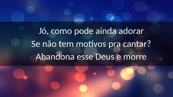 - Jó, como pode ainda adorarSe não tem motivos pra cantar?Abandona esse Deus e morre
