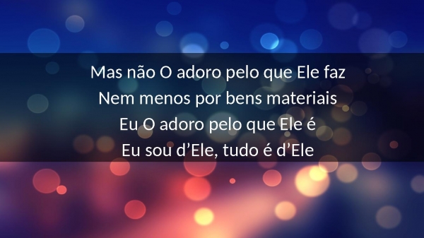 - Mas não O adoro pelo que Ele fazNem menos por bens materiaisEu O adoro pelo que Ele éEu sou d’Ele, tudo é d’Ele