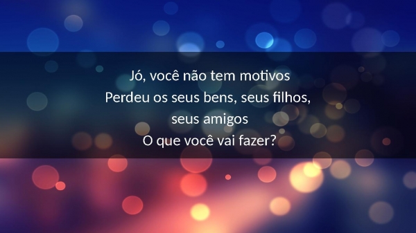 - Jó, você não tem motivosPerdeu os seus bens, seus filhos, seus amigosO que você vai fazer?