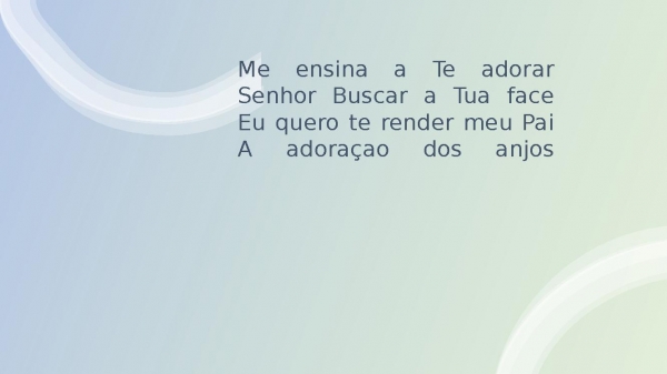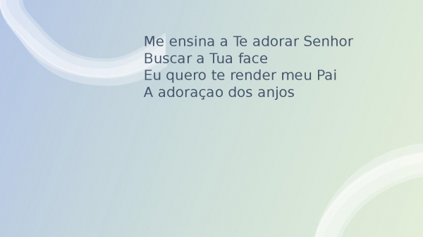 - Me ensina a Te adorar SenhorBuscar a Tua faceEu quero te render meu PaiA adoraçao dos anjos