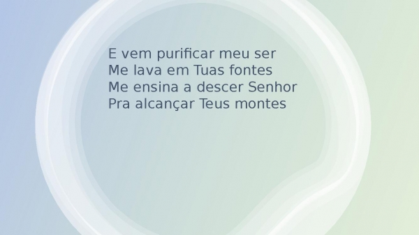 - E vem purificar meu serMe lava em Tuas fontesMe ensina a descer Senhor Pra alcançar Teus montes