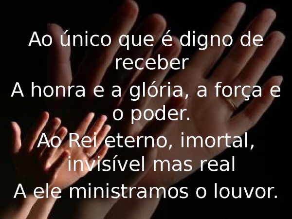- Ao único que é digno de receberA honra e a glória, a força e o poder.Ao Rei eterno, imortal, invisível mas realA ele ministramos o louvor.