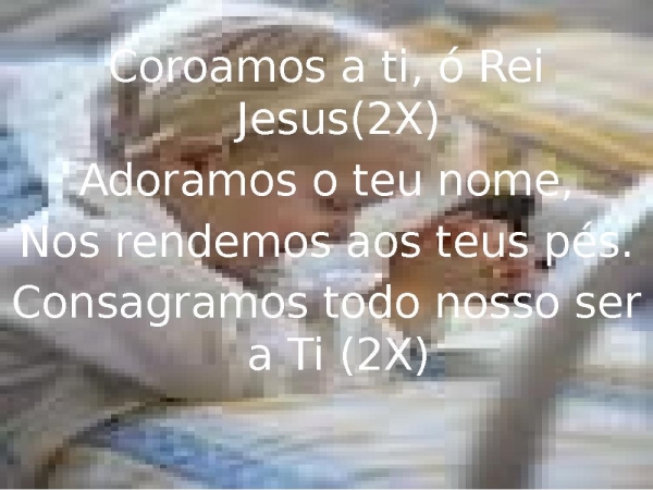- Coroamos a ti, ó Rei Jesus(2X)Adoramos o teu nome,Nos rendemos aos teus pés.Consagramos todo nosso ser a Ti (2X)