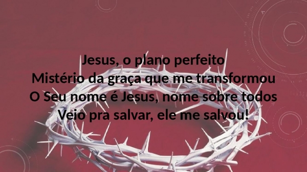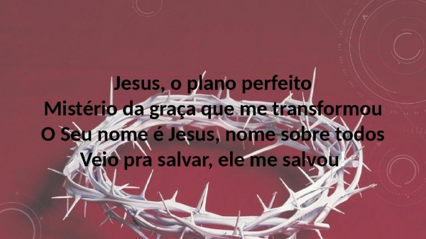 - Jesus, o plano perfeitoMistério da graça que me transformouO Seu nome é Jesus, nome sobre todosVeio pra salvar, ele me salvou!