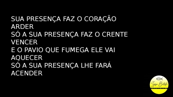 - Sua presença faz o coração arderSó a sua presença faz o crente vencerE o pavio que fumega Ele vai aquecerSó a sua presença lhe fará acender