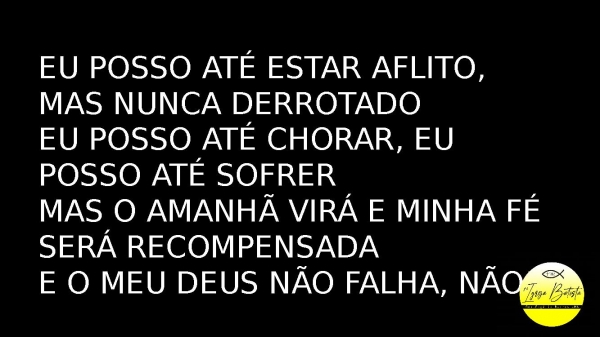 - Eu posso até estar aflito, mas nunca derrotadoEu posso até chorar, eu posso até sofrerMas o amanhã virá e minha fé será recompensadaE o meu Deus não falha, não!