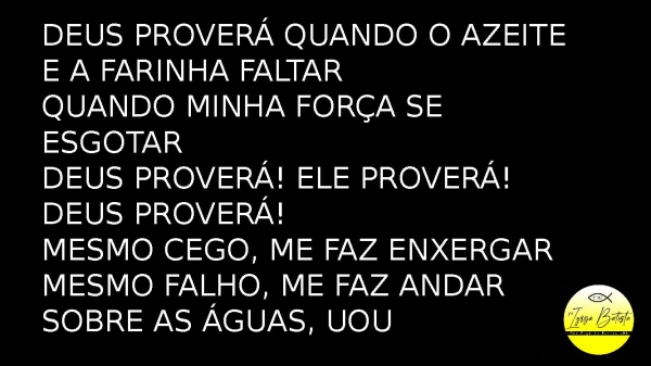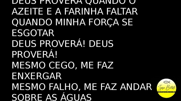 - Deus proverá quando o azeite e a farinha faltarQuando minha força se esgotarDeus proverá! Deus proverá!Mesmo cego, me faz enxergarMesmo falho, me faz andar sobre as águas