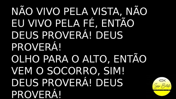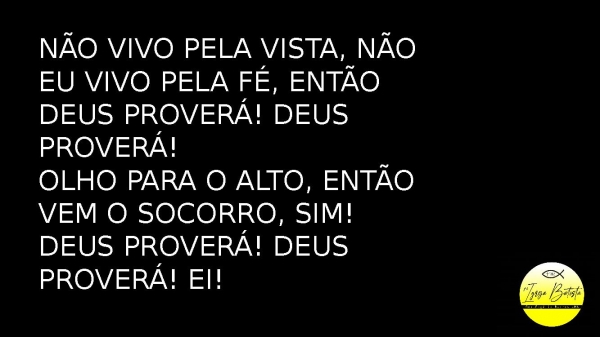 - Não vivo pela vista, nãoEu vivo pela fé, entãoDeus proverá! Deus proverá!Olho para o alto, entãoVem o socorro, sim!Deus proverá! Deus proverá! Ei!