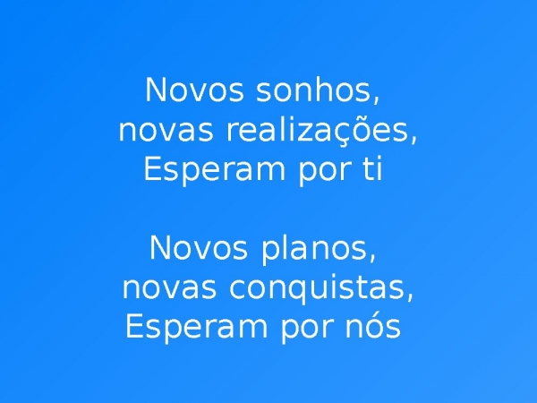 - Novos sonhos, novas realizações, Esperam por ti Novos planos, novas conquistas, Esperam por nós