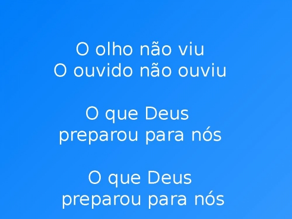 - O olho não viuO ouvido não ouviuO que Deus preparou para nósO que Deus preparou para nós