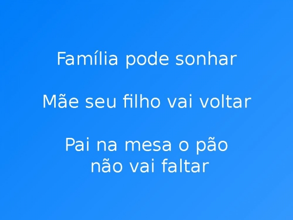 - Família pode sonharMãe seu filho vai voltarPai na mesa o pão não vai faltar