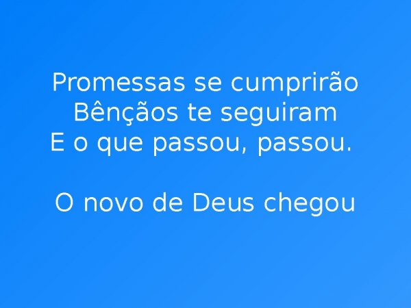 - Promessas se cumprirãoBênçãos te seguiramE o que passou, passou. O novo de Deus chegou