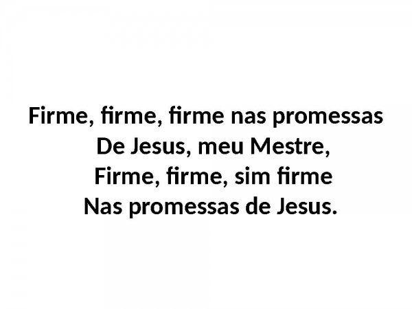 - Firme, firme, firme nas promessasDe Jesus, meu Mestre,Firme, firme, sim firmeNas promessas de Jesus.