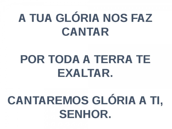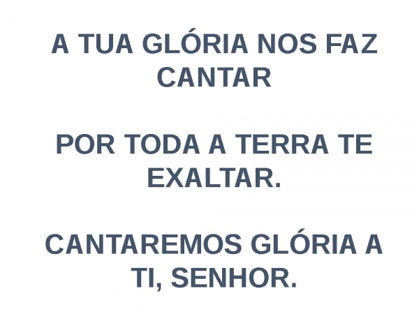 - A TUA GLÓRIA NOS FAZ CANTARPOR TODA A TERRA TE EXALTAR.CANTAREMOS GLÓRIA A TI, SENHOR.