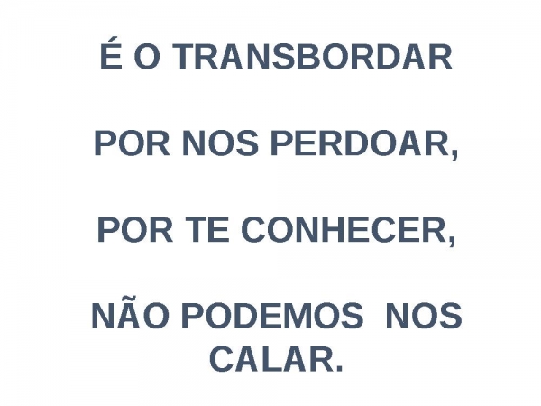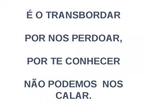- É O TRANSBORDARPOR NOS PERDOAR,POR TE CONHECERNÃO PODEMOS NOS CALAR.