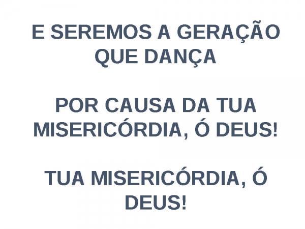 - E SEREMOS A GERAÇÃO QUE DANÇAPOR CAUSA DA TUA MISERICÓRDIA, Ó DEUS!TUA MISERICÓRDIA, Ó DEUS!