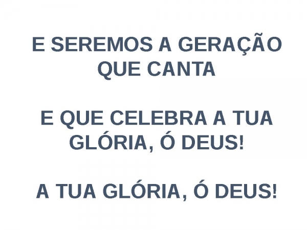 - E SEREMOS A GERAÇÃO QUE CANTAE QUE CELEBRA A TUA GLÓRIA, Ó DEUS!A TUA GLÓRIA, Ó DEUS!