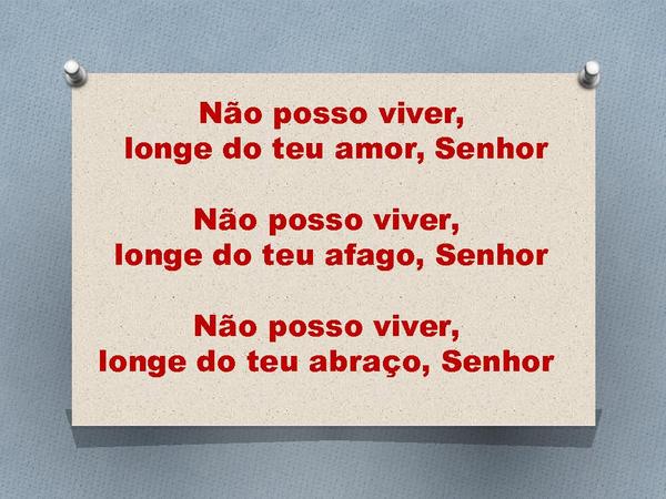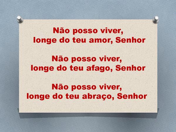 - Não posso viver, longe do teu amor, SenhorNão posso viver, longe do teu afago, SenhorNão posso viver, longe do teu abraço, Senhor