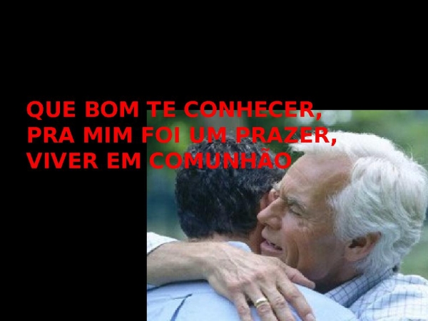 - QUE BOM TE CONHECER, PRA MIM FOI UM PRAZER, VIVER EM COMUNHÃO