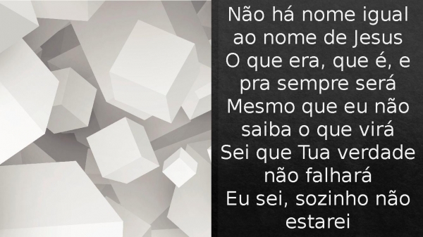 - Não há nome igual ao nome de JesusO que era, que é, e pra sempre seráMesmo que eu não saiba o que viráSei que Tua verdade não falharáEu sei, sozinho não estarei