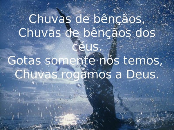 - Chuvas de bênçãos,Chuvas de bênçãos dos céus.Gotas somente nós temos, Chuvas rogamos a Deus.