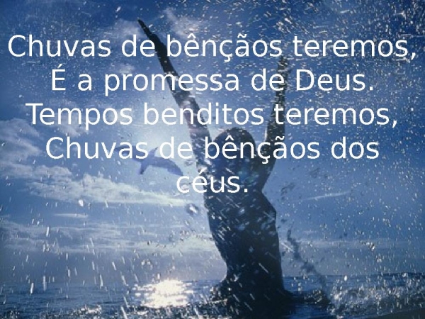 - Chuvas de bênçãos teremos,É a promessa de Deus.Tempos benditos teremos,Chuvas de bênçãos dos céus.