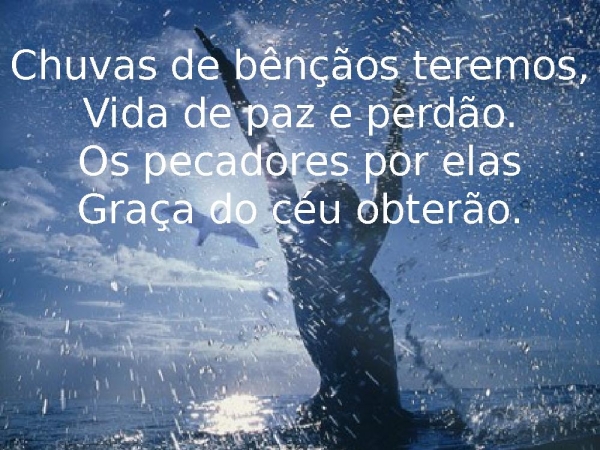 - Chuvas de bênçãos teremos,Vida de paz e perdão.Os pecadores por elasGraça do céu obterão.