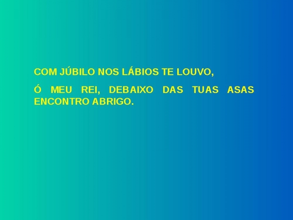 - COM JÚBILO NOS LÁBIOS TE LOUVO,Ó MEU REI, DEBAIXO DAS TUAS ASAS ENCONTRO ABRIGO.