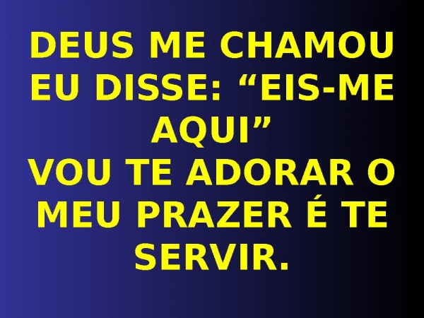 - DEUS ME CHAMOU, EU DISSE: “EIS-ME AQUI”VOU TE ADORAR O MEU PRAZER É TE SERVIR.