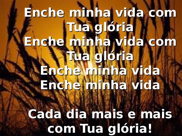- Enche minha vida com Tua glóriaEnche minha vida com Tua glóriaEnche minha vidaEnche minha vidaCada dia mais e mais com Tua glória!