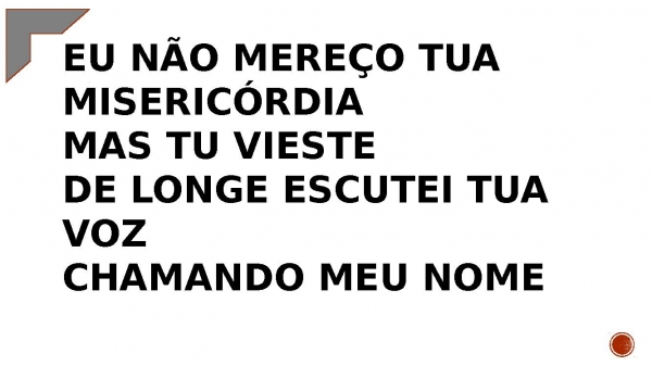 - Eu não mereço Tua misericórdia Mas Tu vieste De longe escutei Tua voz Chamando meu nome
