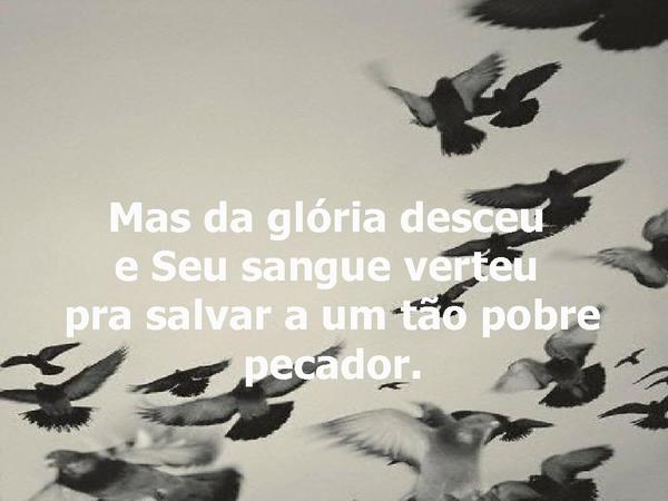 - Mas da glória desceu e Seu sangue verteu pra salvar a um tão pobre pecador.