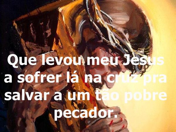 - Que levou meu Jesus a sofrer lá na cruz pra salvar a um tão pobre pecador.