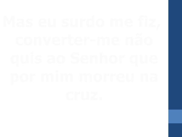- Mas eu surdo me fiz, converter-me não quis ao Senhor que por mim morreu na cruz.