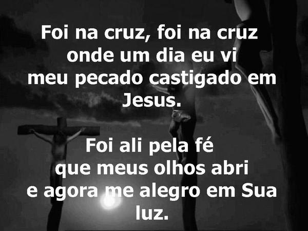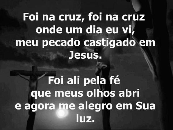- Foi na cruz, foi na cruz onde um dia eu vimeu pecado castigado em Jesus.Foi ali pela fé que meus olhos abrie agora me alegro em Sua luz.