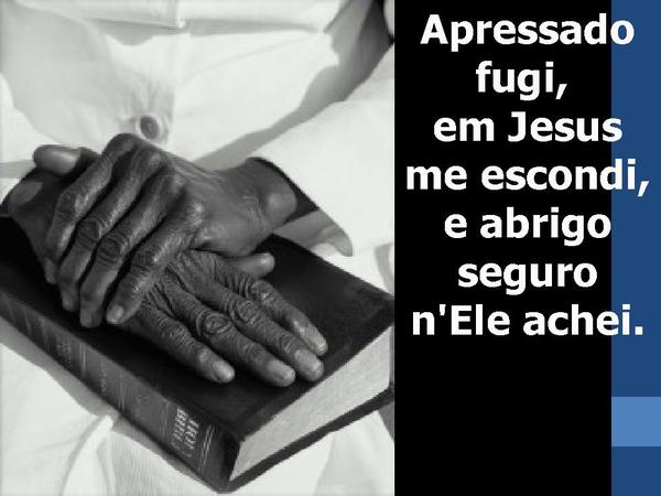 - Apressado fugi, em Jesus me escondi, e abrigo seguro n'Ele achei.