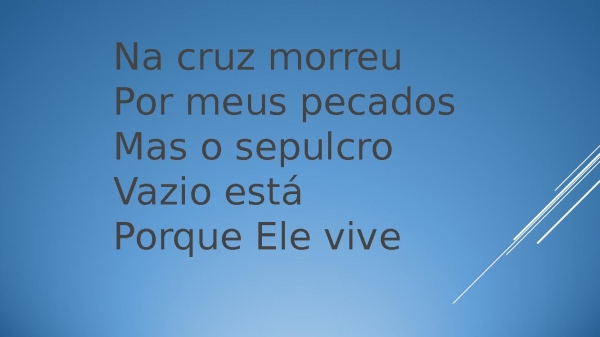 - Na cruz morreuPor meus pecadosMas o sepulcroVazio estáPorque Ele vive
