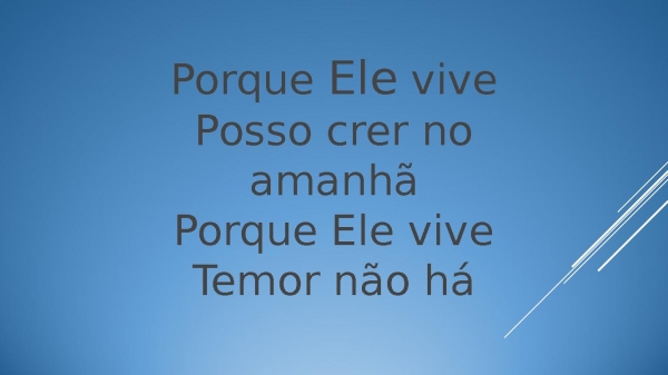 - Porque Ele vivePosso crer no amanhãPorque Ele viveTemor não há