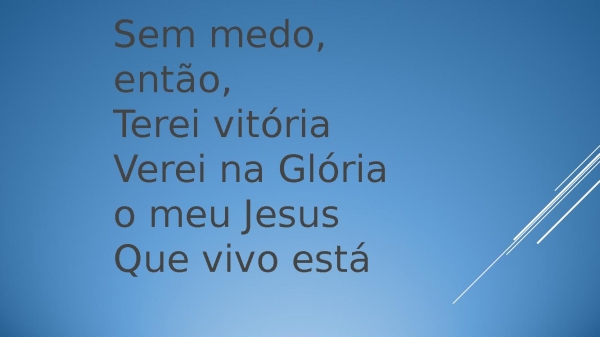 - Sem medo, então,Terei vitóriaVerei na Glória o meu JesusQue vivo está