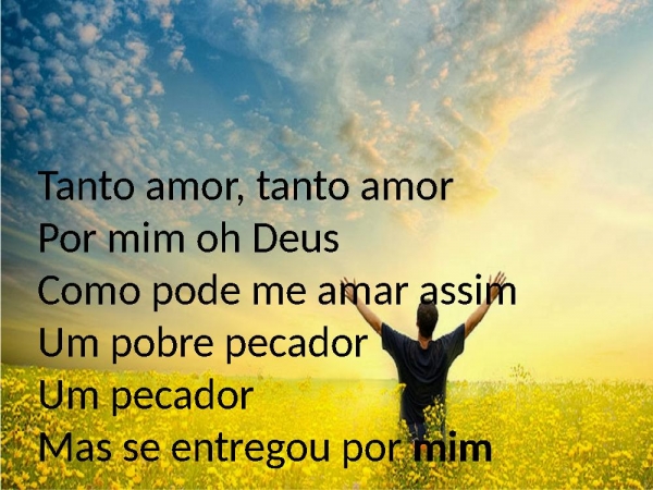 - Tanto amor, tanto amor Por mim oh Deus Como pode me amar assim Um pobre pecador Um pecador Mas se entregou por mim